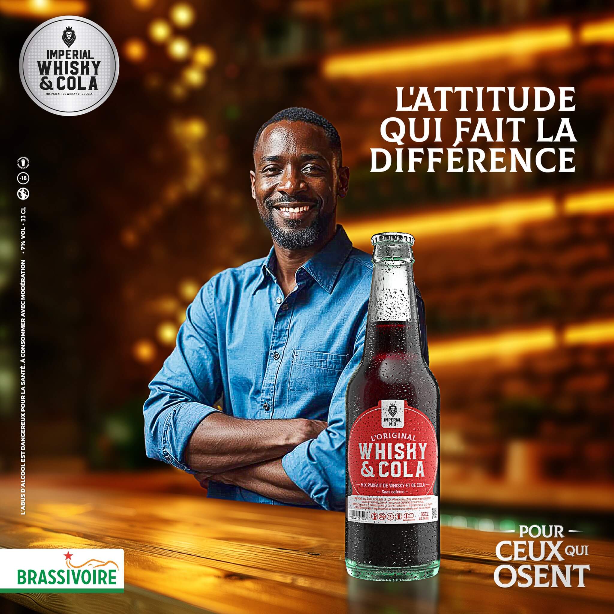 Whisky Cola, est l’alliance parfaite du whisky et du cola, pour une boisson audacieuse et raffinée avec 7% d’alcool. Whisky Cola est bien plus qu’un simple alcomix : c’est une invitation à réinventer vos moments de plaisir, entre amis ou en solo. Avec son goût unique et son caractère affirmé, Whisky Cola s’adresse à ceux qui osent et qui innovent. Classe et moderne, cette boisson incarne l’art de se réinventer, en apportant une touche de nouveauté à chaque gorgée. Soyez prêt à savourer l’élégance et l’audace avec Whisky Cola.